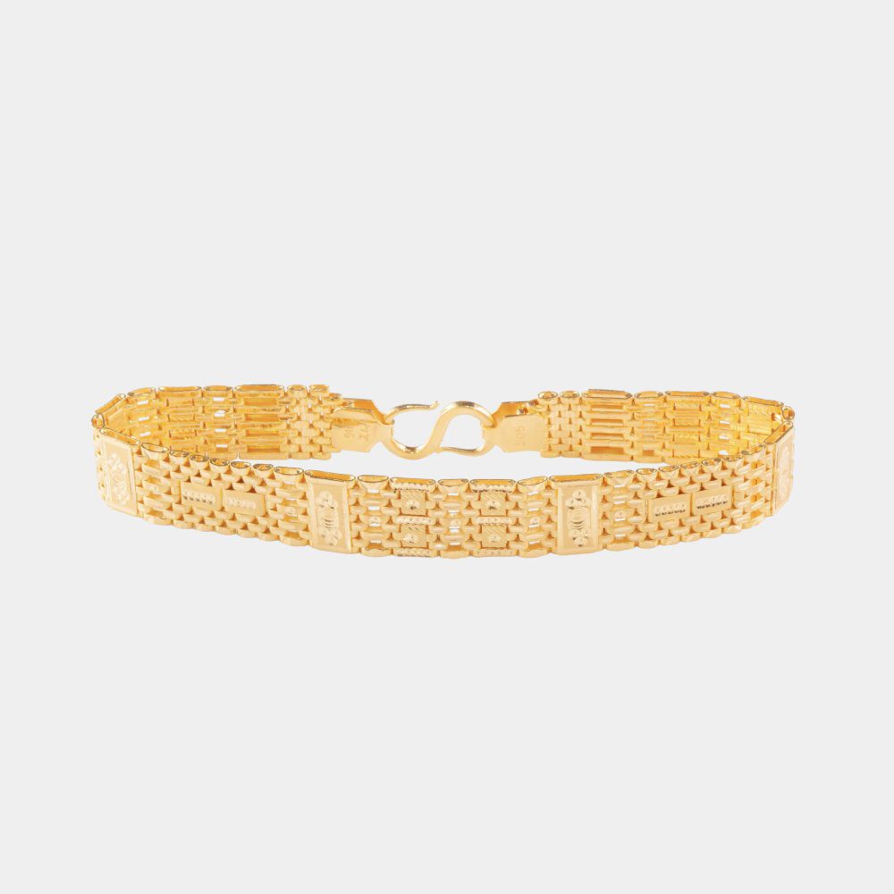 Crafted from genuine 22K solid gold, this bracelet showcases timeless craftsmanship with its intricate textured link design. The bold yet refined look makes it a versatile accessory, perfect for both daily wear and special occasions. Featuring a secure S-hook clasp, this bracelet combines elegance, durability, and cultural heritage in one stunning piece.