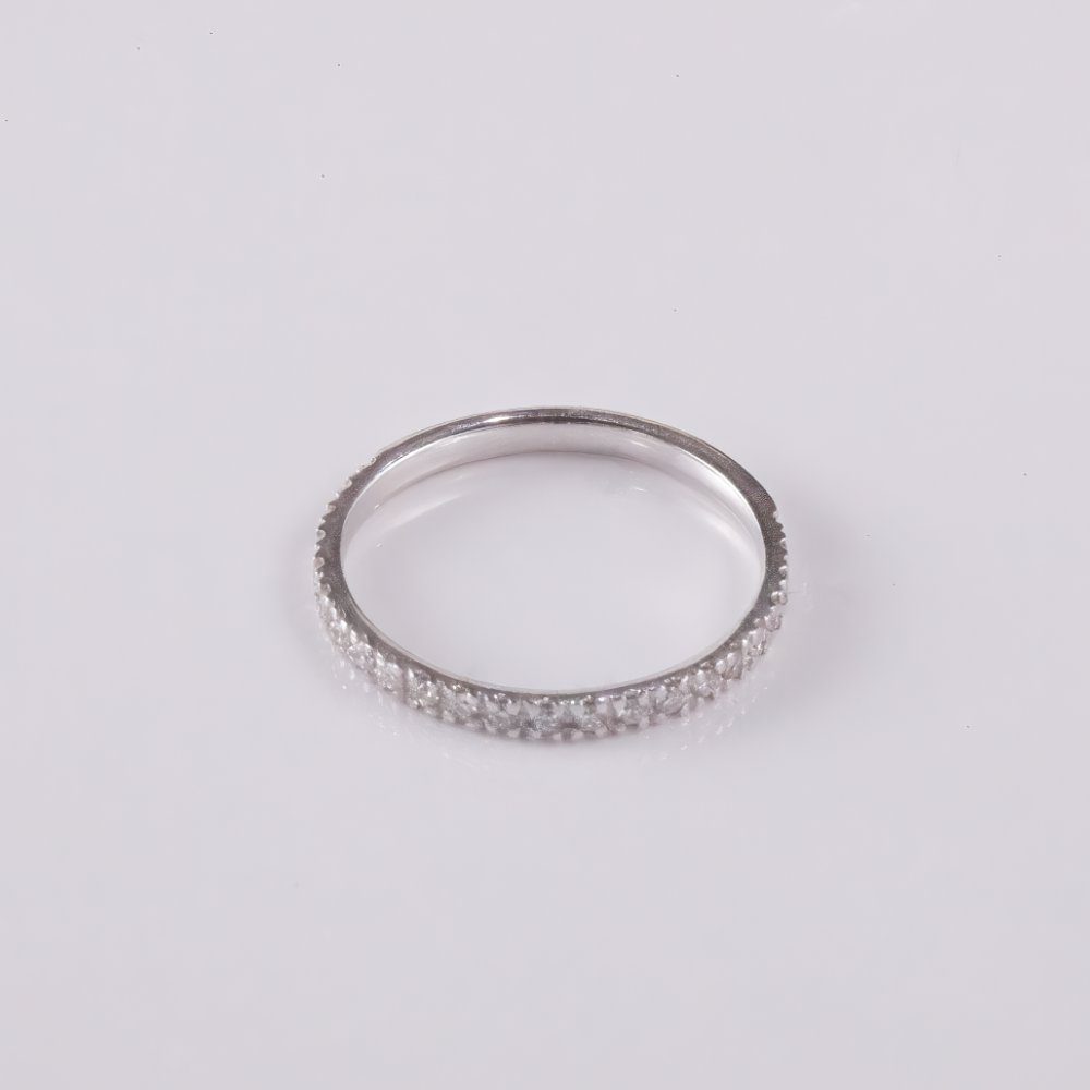 Timeless and sophisticated, this diamond eternity band is crafted in luxurious 18K white gold. Featuring a row of meticulously set round brilliant-cut diamonds, this ring delivers continuous sparkle and elegance from every angle. Its sleek and classic design makes it the perfect choice to wear alone, stacked with other rings, or paired with an engagement ring as a wedding band.