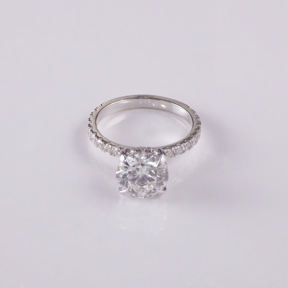 • Center Stone: Round Brilliant Diamond (excellent cut, clarity & brilliance)